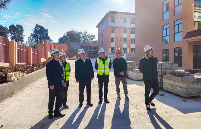 在石林民族中學(xué)項目,蔣璽實地查看項目現(xiàn)場,詳細了解項目當前開展情況及一線職工生活狀況,對項目進度、成本、安全、質(zhì)量管控等方面工作進行指導(dǎo)。